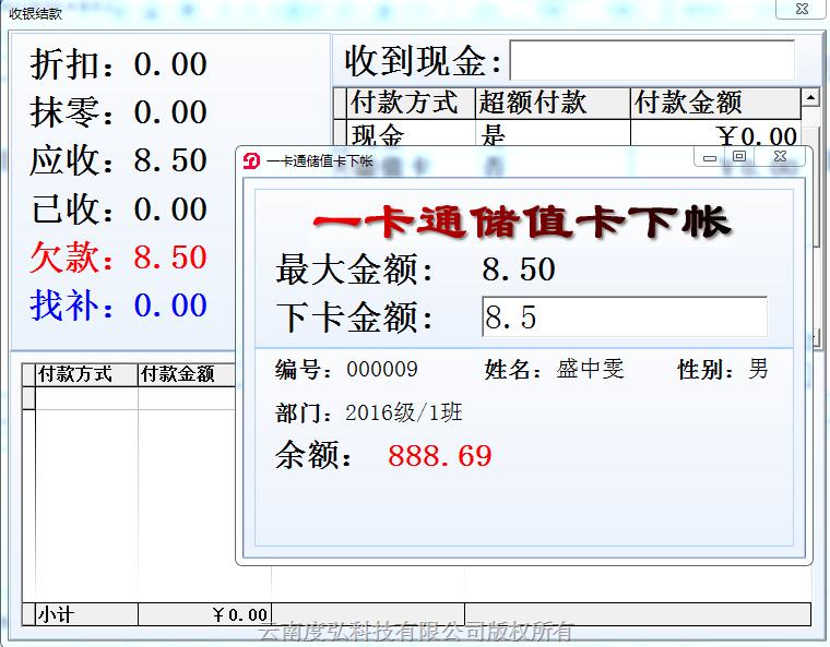 14、一卡通IC卡直接下賬功能;